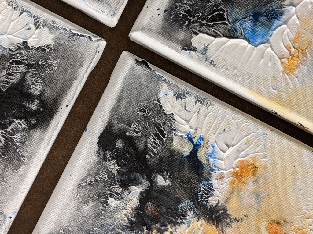 new painting: “A voice murmurs.” paintings “A voice murmurs.” by Thomas Typewriter (watercolor & gesso on four stretched canvas panels) And now for a closer view of some of the details… Share this: Click to share on Pocket (Opens in new window) Pocket Click to share on Facebook (Opens in new window) Facebook Click to print (Opens in new window) Print Click to email a link to a friend (Opens in new window) Email Like Loading...