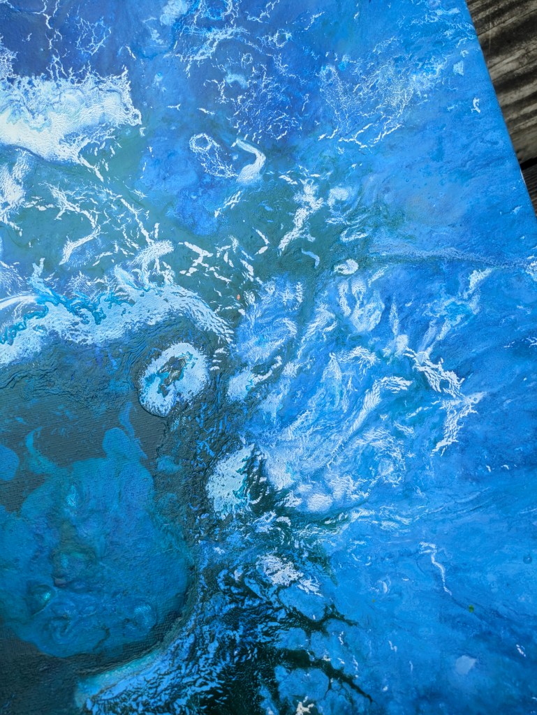 Fluid Dynamics #5 by Thomas Typewriter paintings Fluid Dynamics #5 by Thomas Typewriter (acrylic, gesso, ink, and watercolor on stretched canvas) And here are some closer images to give you an idea of the finer details found in the painting. Share this: Click to share on Pocket (Opens in new window) Pocket Click to share on Facebook (Opens in new window) Facebook Click to print (Opens in new window) Print Click to email a link to a friend (Opens in new window) Email Like Loading...