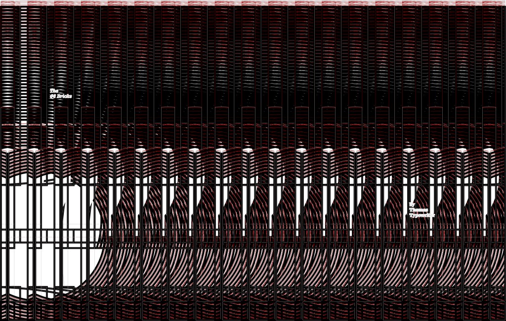 “The #8 Bricks” by Thomas Typewriter (digital, 24″h x 36″w, vector graphics with maybe a slip of paper at the bottom of one of the layers.)