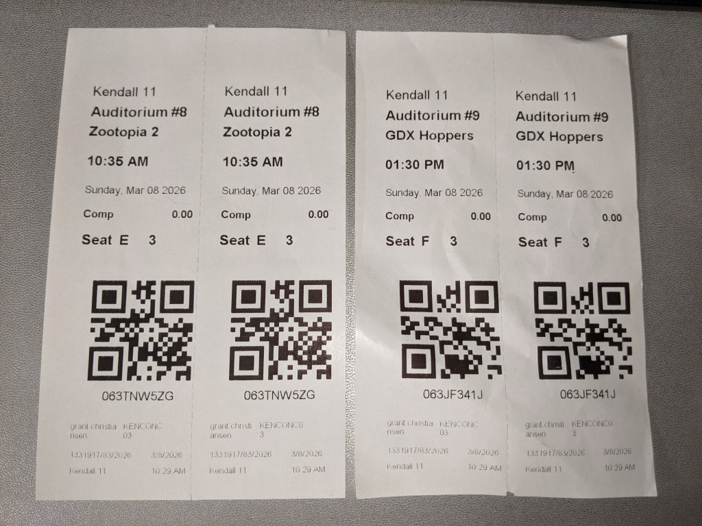 Movies watched so far: 1. The Choral, 2. Good Luck, Have Fun, Don’t Die, 3. Hoppers, 4. The Lego Movie in 3D, 5. Zootopia 2