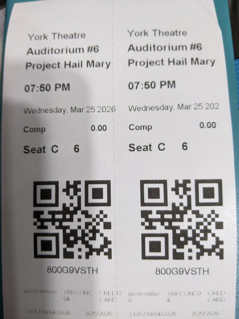 Movies watched so far: 1. The Choral, 2. Good Luck, Have Fun, Don’t Die, 3. Hoppers 4. The Lego Movie in 3D, 5. Project Hail Mary, 6. Zootopia 2
