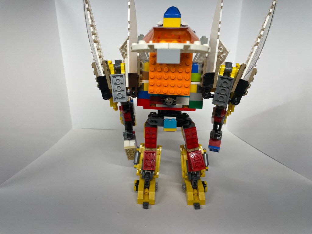 Here is the first form of the Monster-Buster-Pocalyse that my son Secondo has come up with. He says this form is designed to have extra armor in place to defend the Monster Hunter Pilot inside.