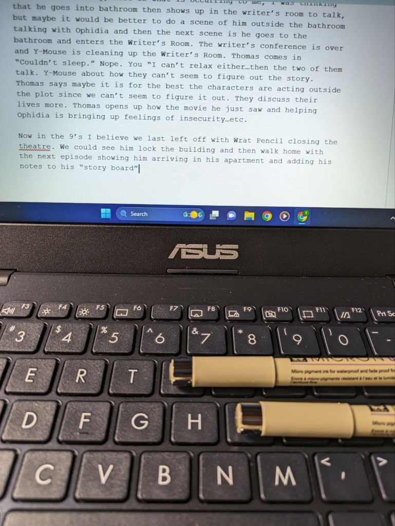 Highlights from the past month: 1. Published the final episode script for The Great Works Project Script. (Now getting the Scriptbook ready for publication this month.) 2. Finished the rough drafts for The Broken Book of Beasties Book Two. 3. The Great Works List suggested some great music in “Destroy Rock and Roll” by Mylo. Wow! 4. Cleaned up painting area.