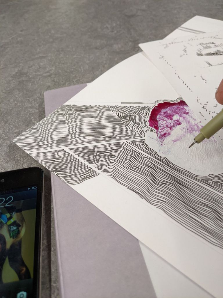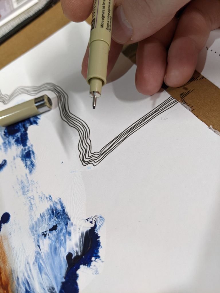 “A Magical Alphabet #17” by Thomas Typewriter (illustration, 9″w x 12″h, pen & ink freehand and with ruler on bristol board)