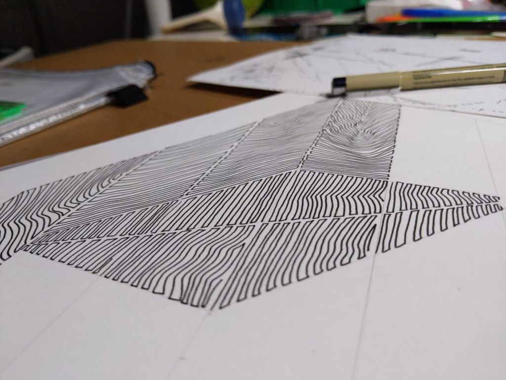 “Papaer Cuuts#6” by Thomas Typewriter (mixed media, 36″w x 24″h, printer paper, colored paper & ink folded then digitally composited with vector graphics)