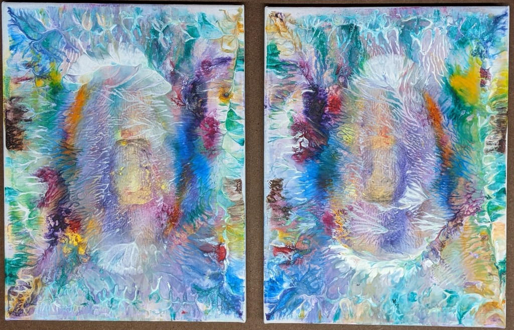 new painting: “The JOY on the Outside rejoices in the presence of the JOY on the Inside.” by Thomas Typewriter paintings “he JOY on the Outside rejoices in the presence of the JOY on the Inside.” by Thomas Typewriter (watercolor and gesso on two stretched canvas panels)