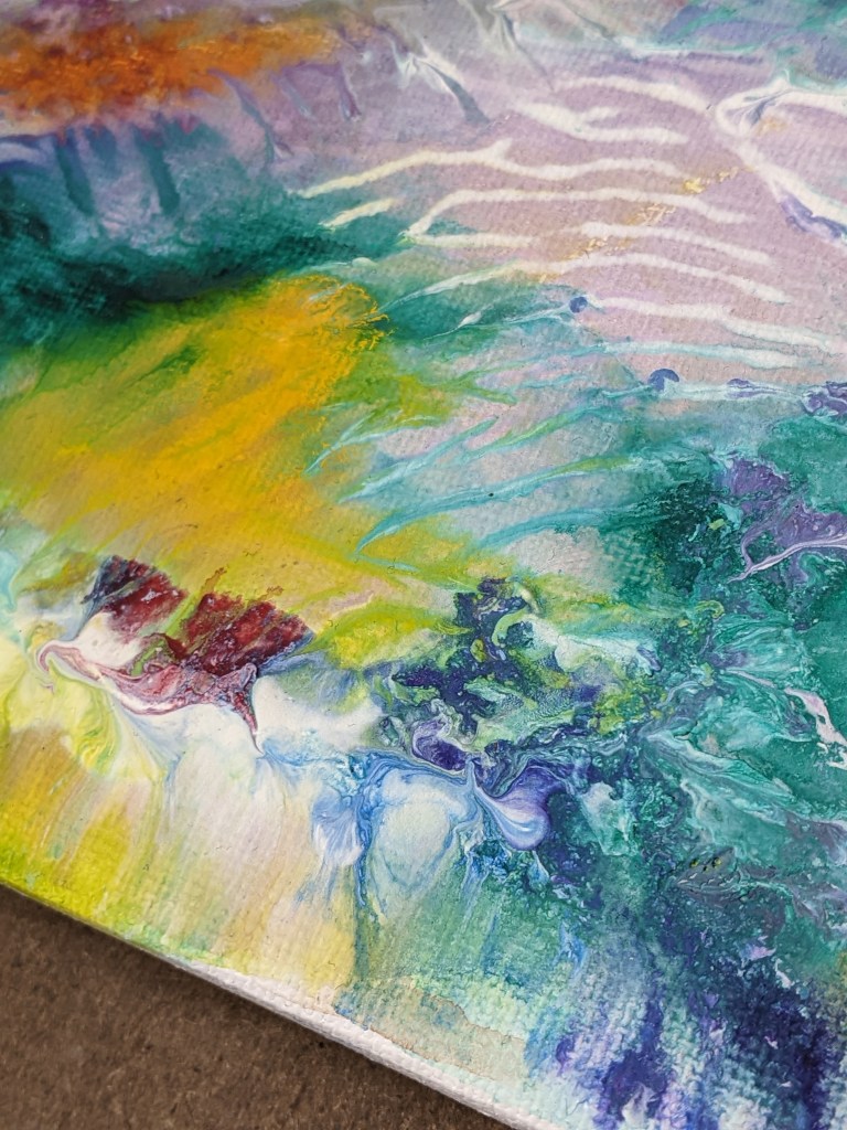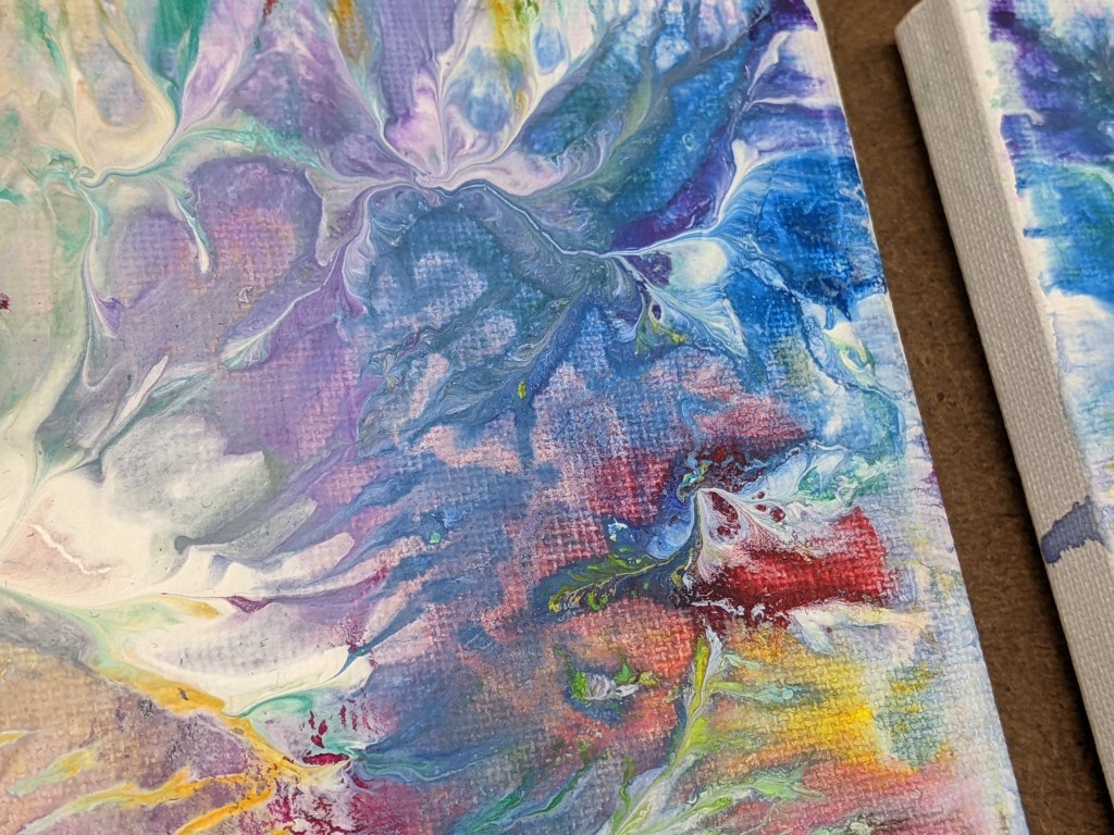 From the easel of Thomas Typewriter: “Joy bursts forth” From the Easel of Thomas Typewriter, paintings “Joy burst forth, through the thoughts, through the actions” by Thomas Typewriter (watercolor and gesso on stretched canvas, 24″ x 30″)