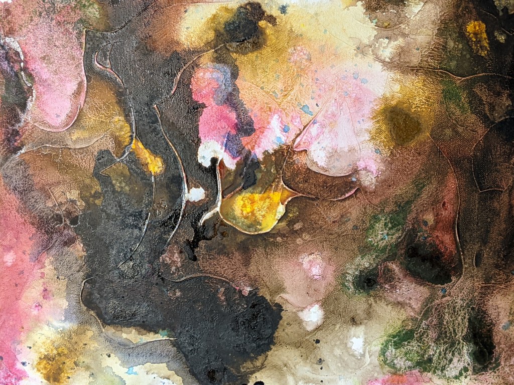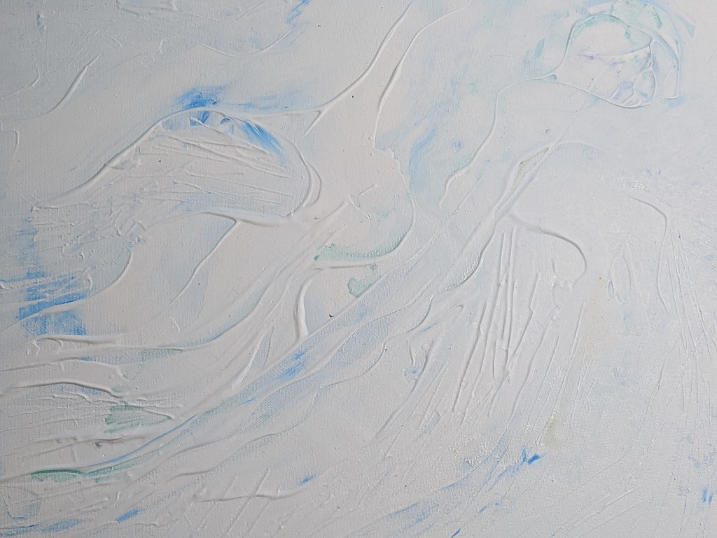 “The complexity of STILLNESS” by Thomas Typewriter ( gesso and ink on stretched canvas. 30″ x 24″)