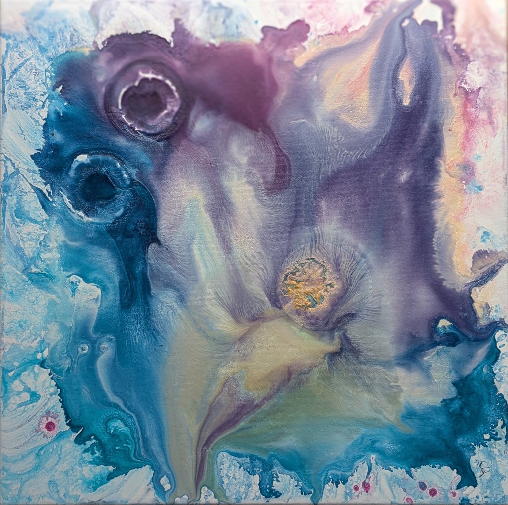 Fluid Dynamics #5 by Thomas Typewriter (acrylic, gesso, ink, and watercolor on stretched canvas)